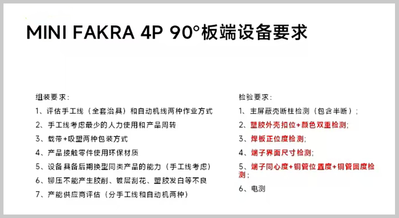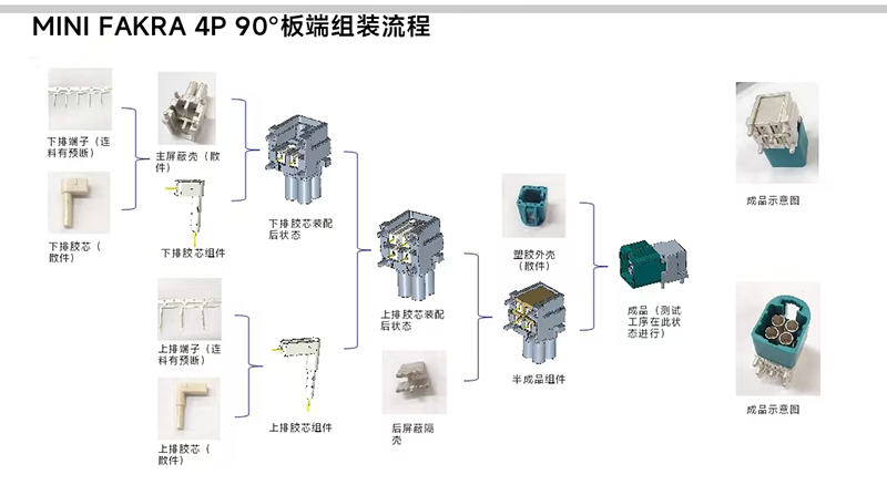 MINI FAKRA 4P 90°板端連接器自動組裝設備生產過程